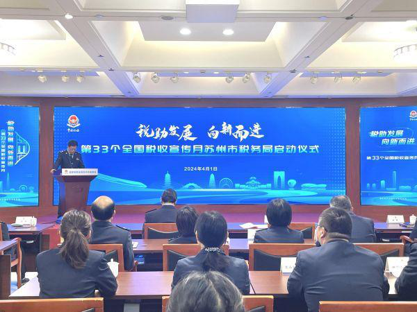 苏州市税务局党委书记、局长李鹏在致辞中表示,苏州将以税收宣传月为契机,落实各项惠企利民税费政策,依法依规组织税费收入,推进税收法治建设,持续提升税费服务效能,更好支持和服务高质量发展。