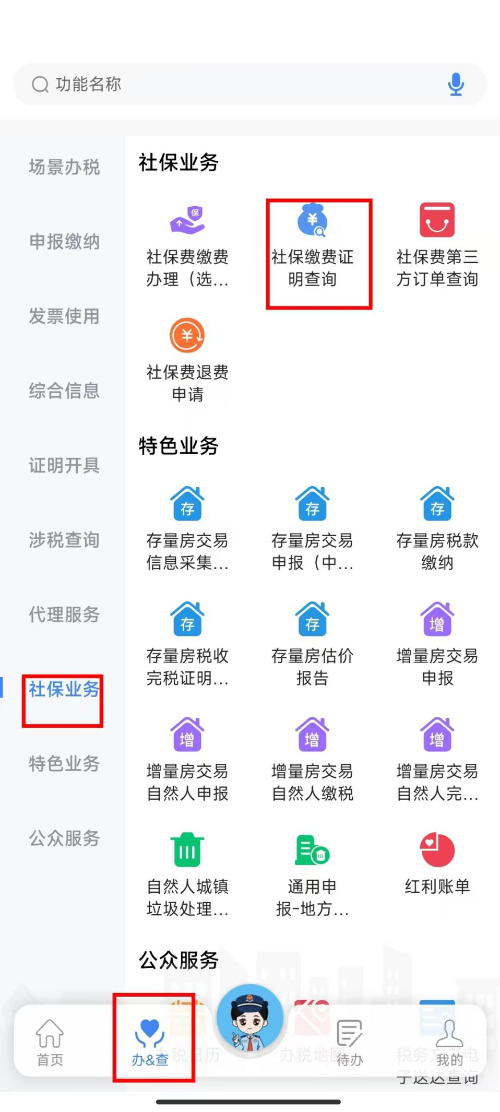 2.通过“电子税务局”APP中“办&查-社保业务-社保费缴费办理(选档)”模块进行办理