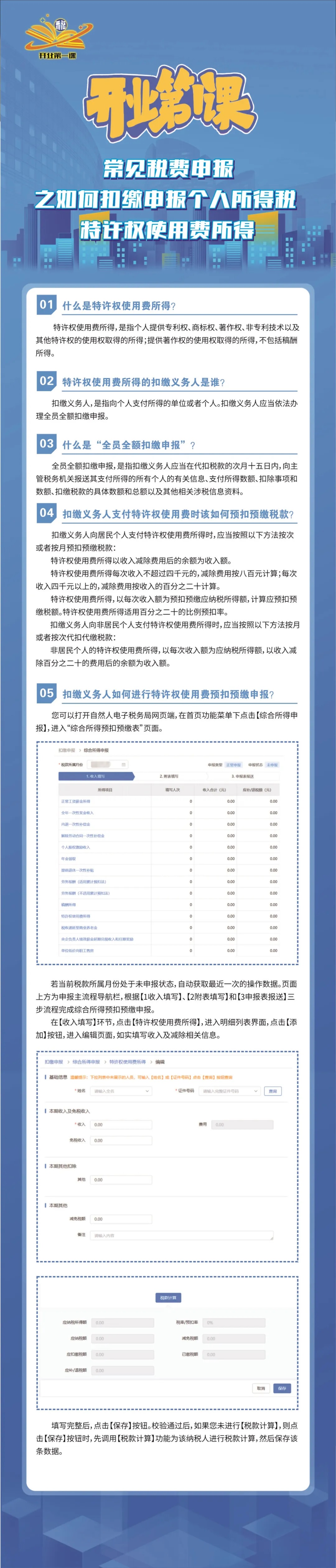 开业第一课|常见税费申报之如何扣缴申报个人所得税特许权使用费所得
