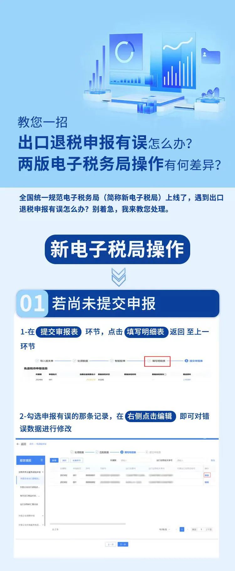 【图解】教您一招|出口退税申报有误怎么办?两版电子税务局操作有何差异?