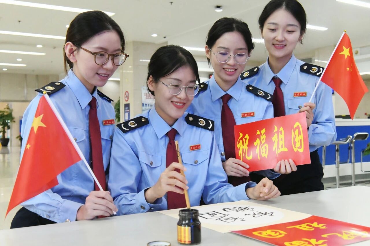在盐城,国家税务总局滨海县税务局在国庆节来临之际开展“我为祖国送祝福”活动,青年干部们将自己对党和祖国的忠诚与深情凝聚成笔墨,共同庆祝中华人民共和国成立76周年,祝福祖国繁荣昌盛、国泰民安。