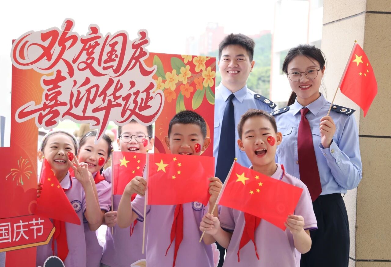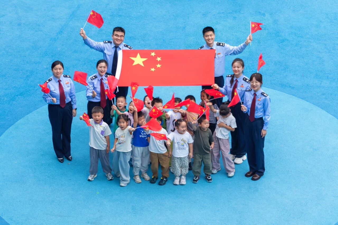 在南京,国家税务总局南京市税务局第二稽查局组织开展“红旗飘飘庆国庆 税惠暖暖伴成长”主题活动,青年干部和南京市小西湖幼儿园的小朋友们共同庆祝中华人民共和国成立76周年,祝愿伟大祖国繁荣昌盛。