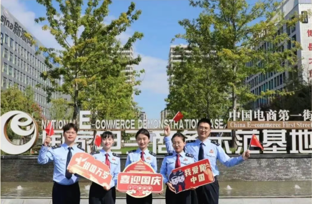 在宿迁,国家税务总局宿迁市税务局青年服务队走进中国宿迁电子商务产业园,用优化服务、惠企利民的扎实行动,表达了对祖国76周年华诞别样的深情与祝福。