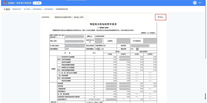 答:登录电子税务局后,依次点击【我要查询】-【一户式查询】-【申报信息查询】,进入“申报信息查询”界面。确认申报起止日期后,您可在查询结果中选中需要导出的申报表,点击右上角的“导出”按钮即可进行下载打印。
