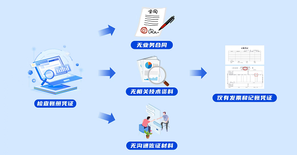 结合前期的分析,检查人员依法约谈了力软公司的代理记账会计,请其提供相关材料配合检查。在该公司提供的生产经营相关材料中,检查人员既没有找到其与3家开票方签订的业务合同,也没有找到发票显示的信息技术服务所需的项目计划书、运维手册或用户手册等资料,更没有发现任何与业务相关的沟通佐证材料。仅有的发票和记账凭证并不足以证明业务真实存在。