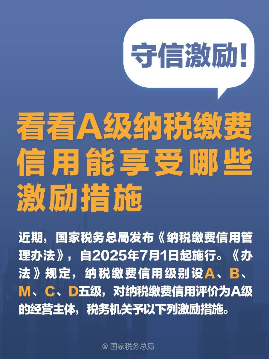 【图解】守信激励!看看A级纳税缴费信用能享受哪些激励措施