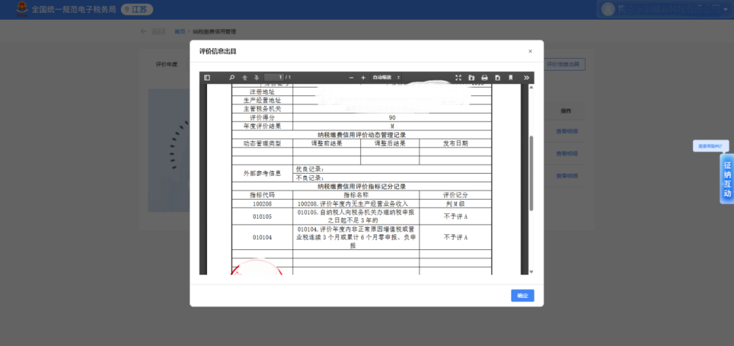 (二)进入功能后,会展示当前年度纳税缴费信用评价情况。