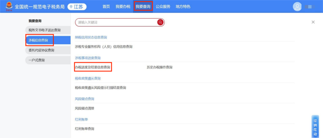(七)申请后企业可以在电子税务局【纳税缴费信用管理】界面查询“评价结果”及其明细。企业也可以在电子税务局-【我要查询】-【涉税信息查询】-【涉税事项进度查询】-【办税进度及结果查询】中查看办税进度。