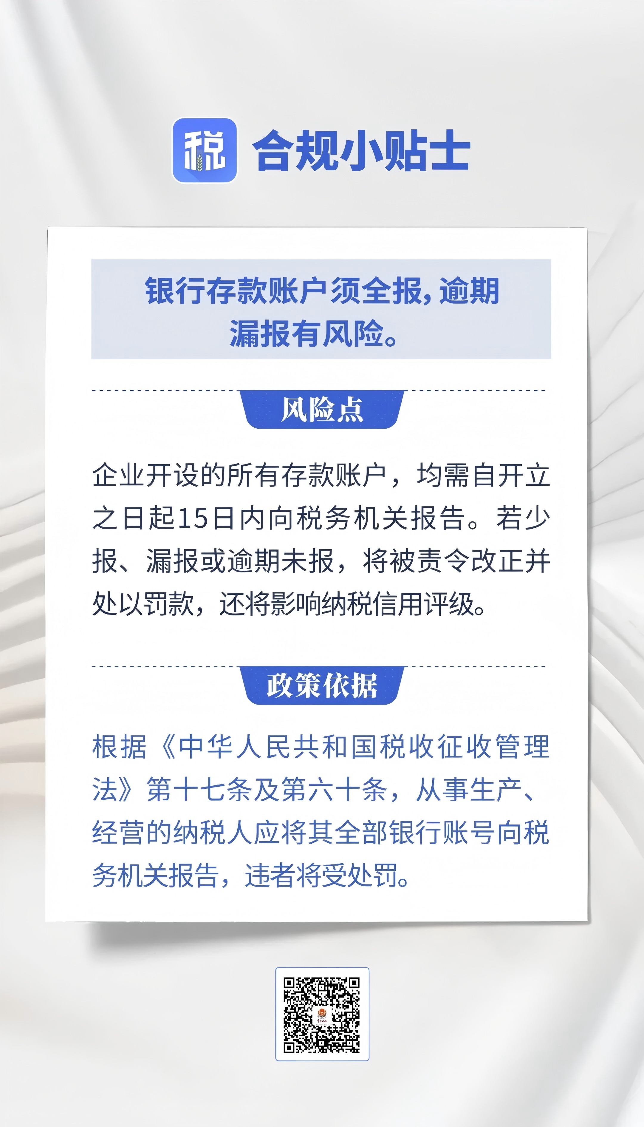 【图解】合规小贴士|银行存款账户须全报,逾期漏报有风险