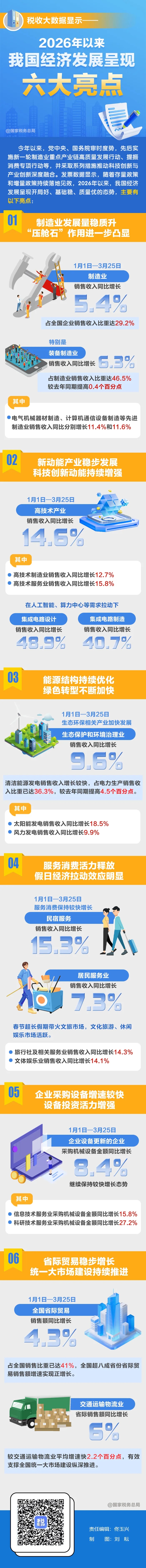【图解】税收大数据显示:2026年以来我国经济发展呈现六大亮点